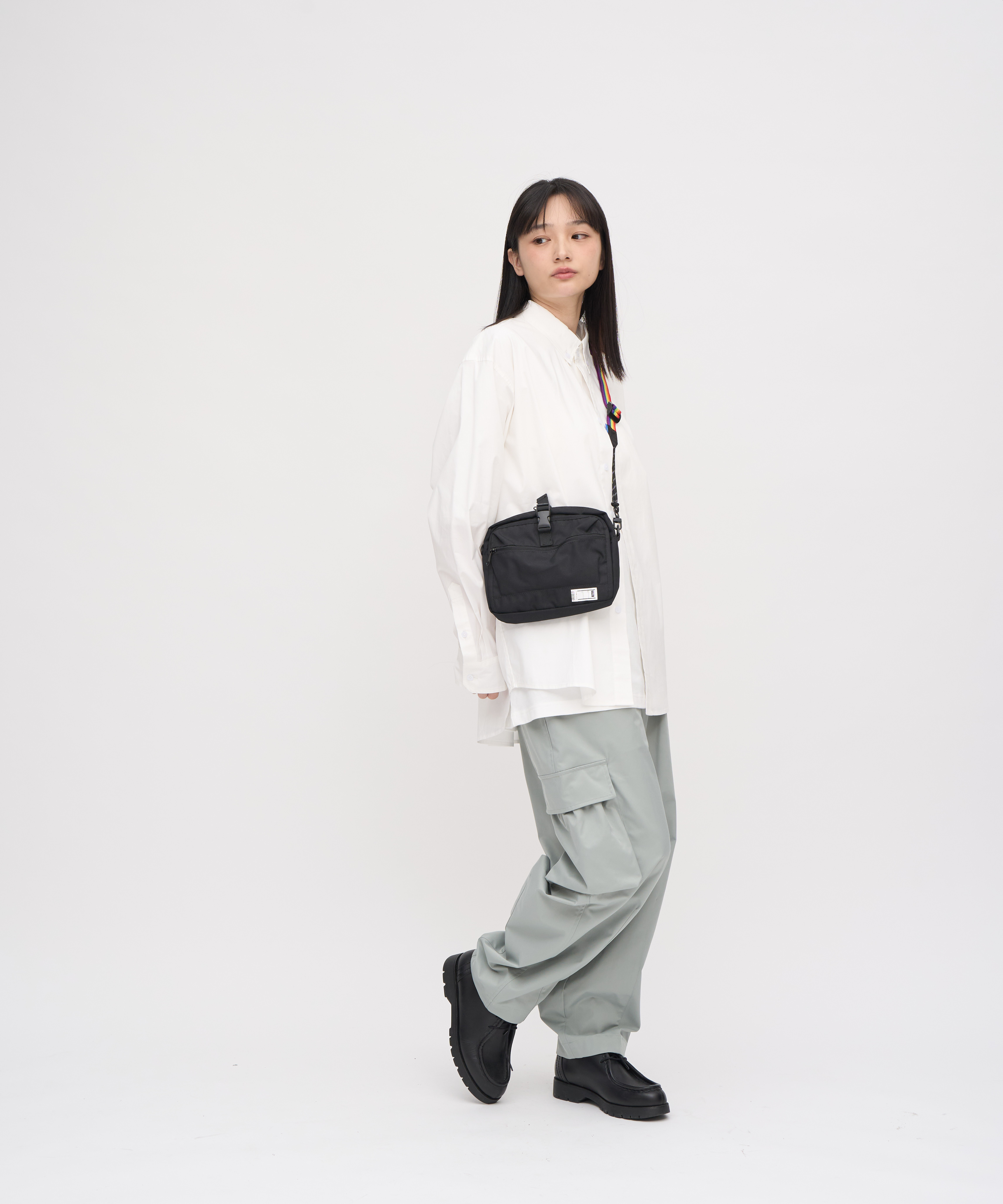 - 右側立體大口袋:鬆緊開口搭配褶子設計,增添整體空氣感輪廓與不對稱的獨特性。