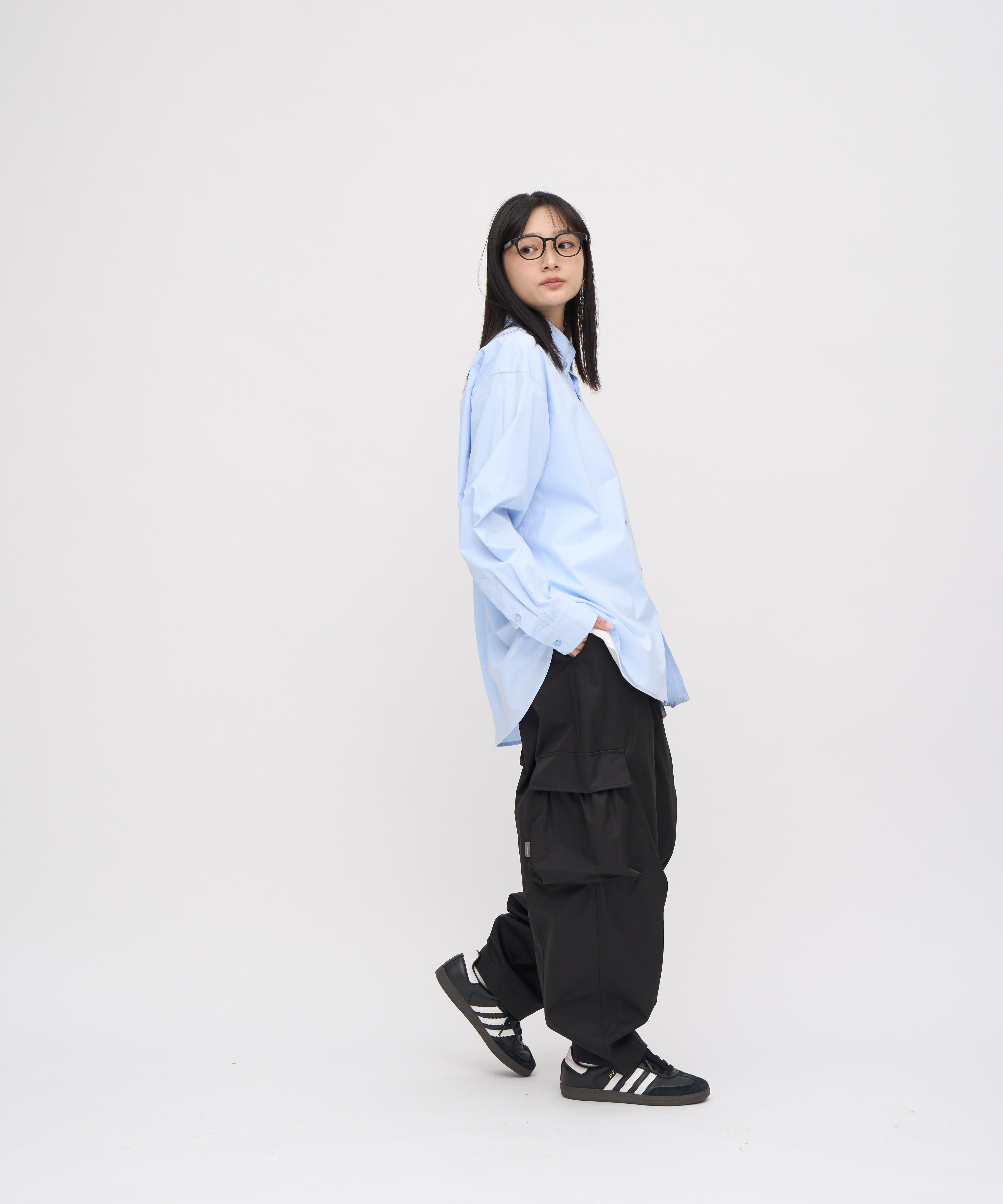 A: 兩件都是神褲,但風格不同。「Billy Pants」是「上寬下窄」的錐形剪裁,風格較俐落是第一次想嘗試寬褲的首選;這件「廓型神褲」則是「繭型」剪裁,褲管更寬、空氣感更強,風格偏向 City Boy 和機能感。