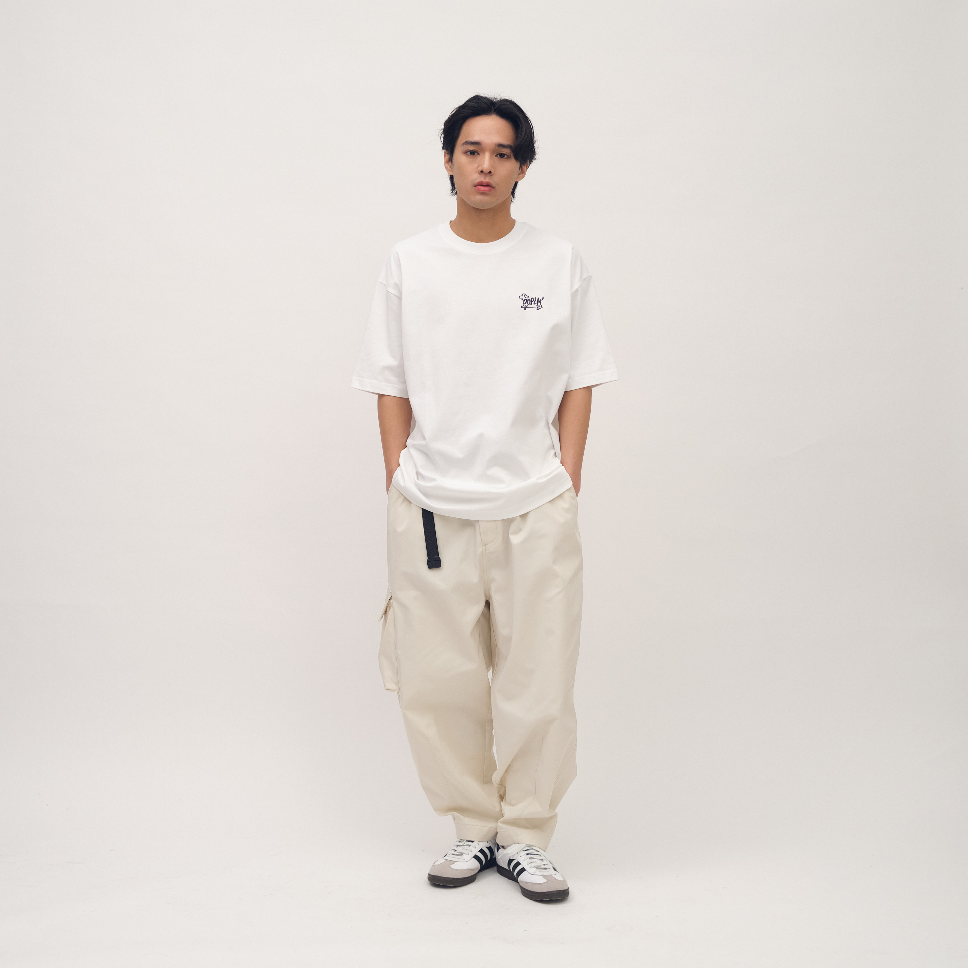 A: 完全相反!「繭型」(Cocoon) 的特色是褲管中段寬、褲腳微收,能完美修飾大腿和小腿線條,創造出「空氣感」輪廓。搭配短版上衣或將 TEE 紮入褲中,反而能讓腿部比例看起來更修長。Q: 什麼是「高密布料」?適合台灣的天氣嗎?